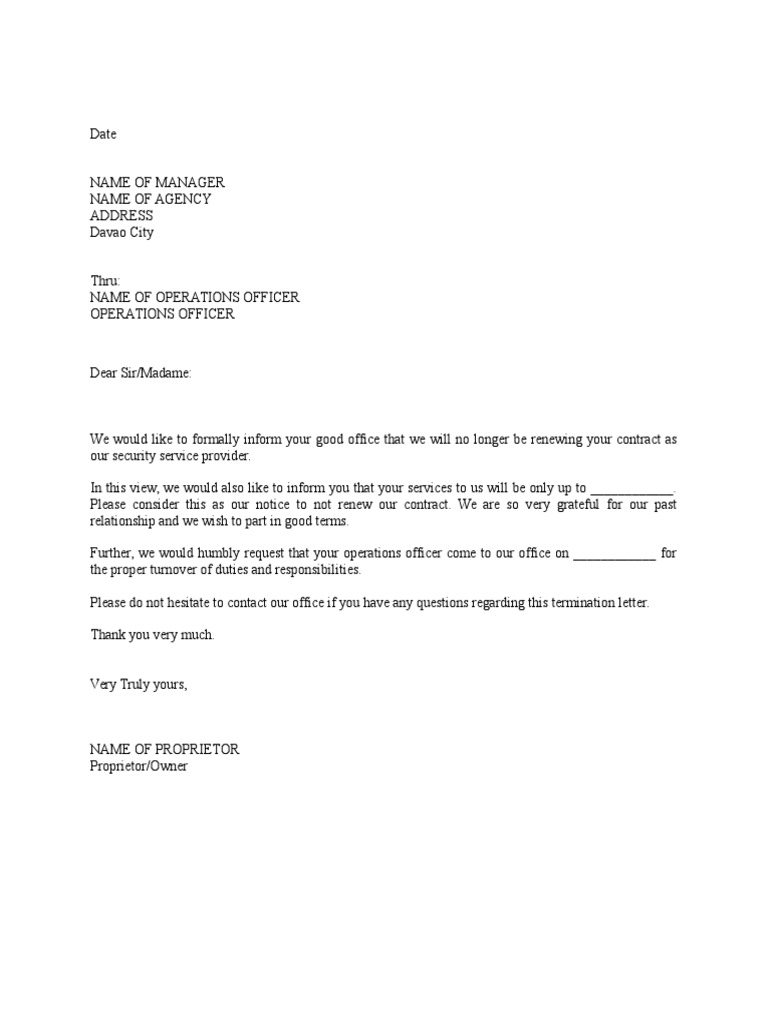 Termination Of Contract For Security Services Letter Pdf